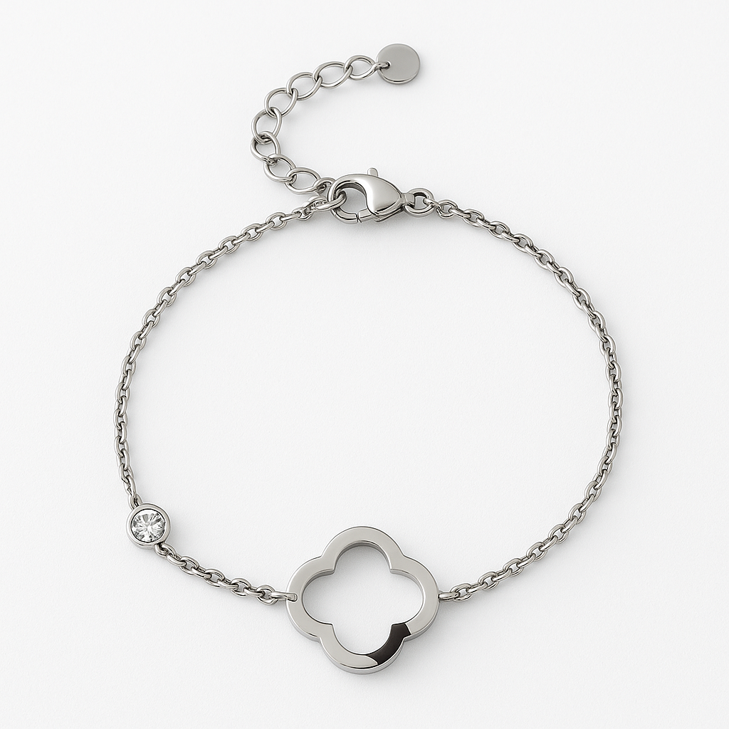 Bracelet Trèfle Argenté en acier inoxydable et zircon